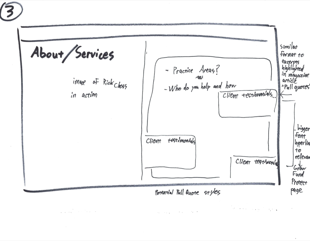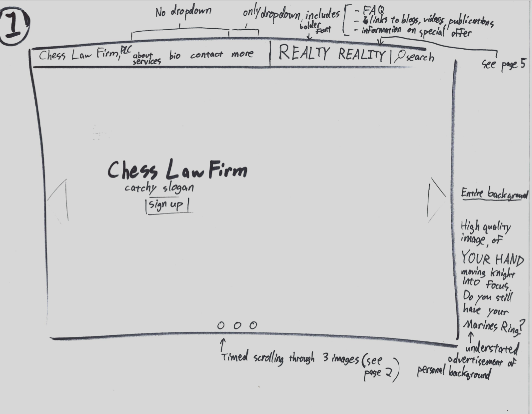 When designing the landing page, it was decided that a serifed typeface would be used exclusively for the name of the firm in the header and page titles. The intention was to imply historicity and tradition of excellence. In contrast, non-serifed letters would be utilized through body text and footer to offer a friendlier and approachable atmosphere.